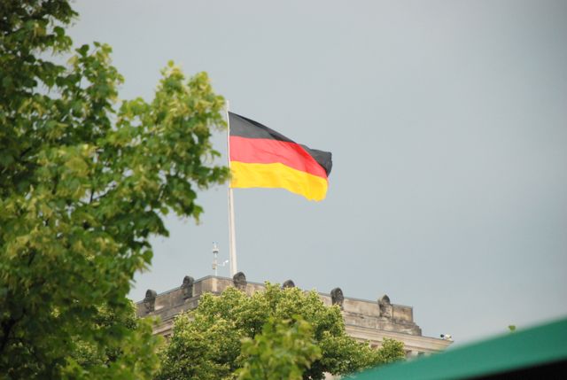 Brandenberg Gate -- The German National Flag aloft the Reichstag