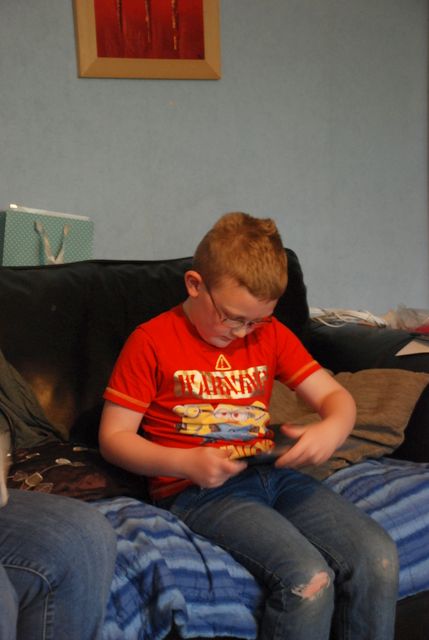 20140524 Visit to Stephen & Nicky -- Ewan with grandma's I-Pad
