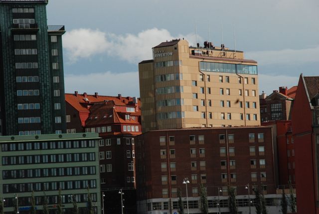 20180825 Gothenburg from waterbus -- Our Hotel - note the huge window!